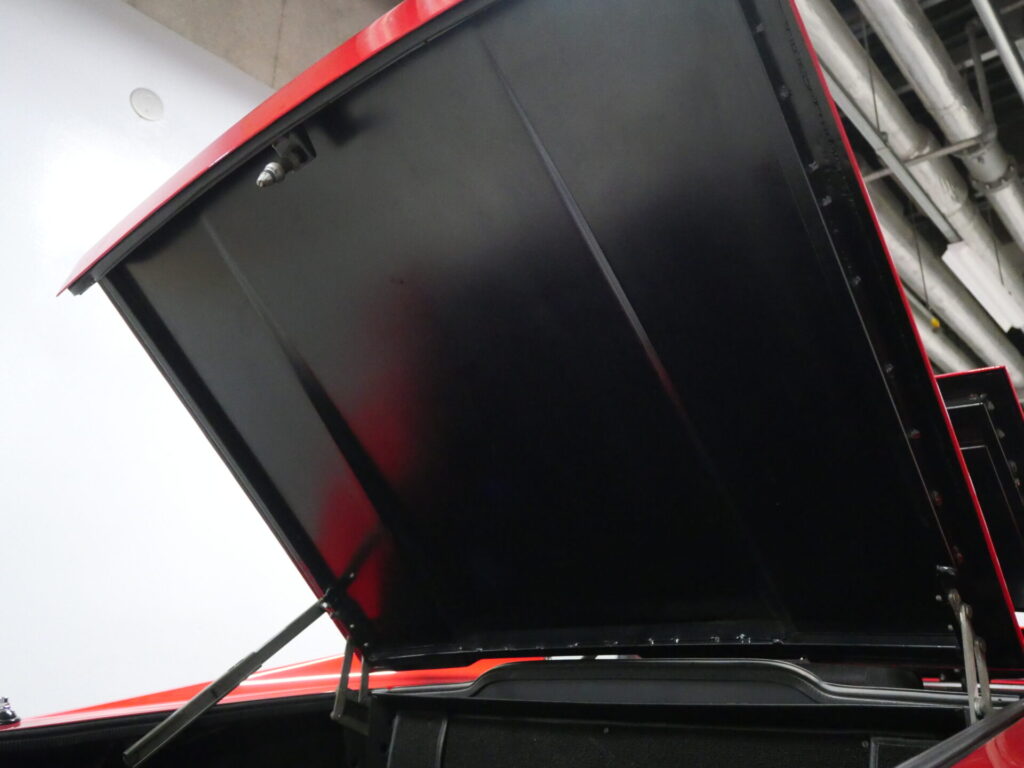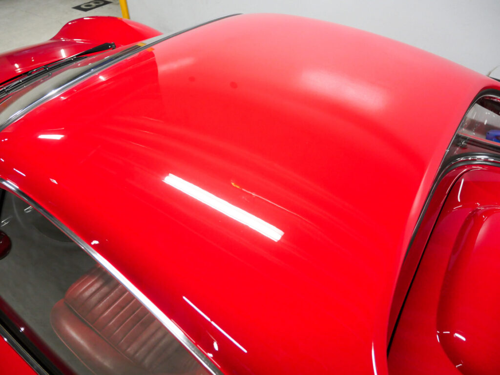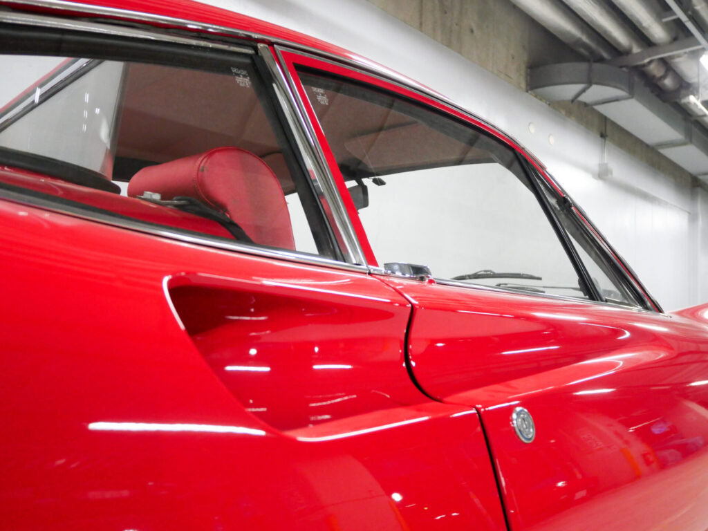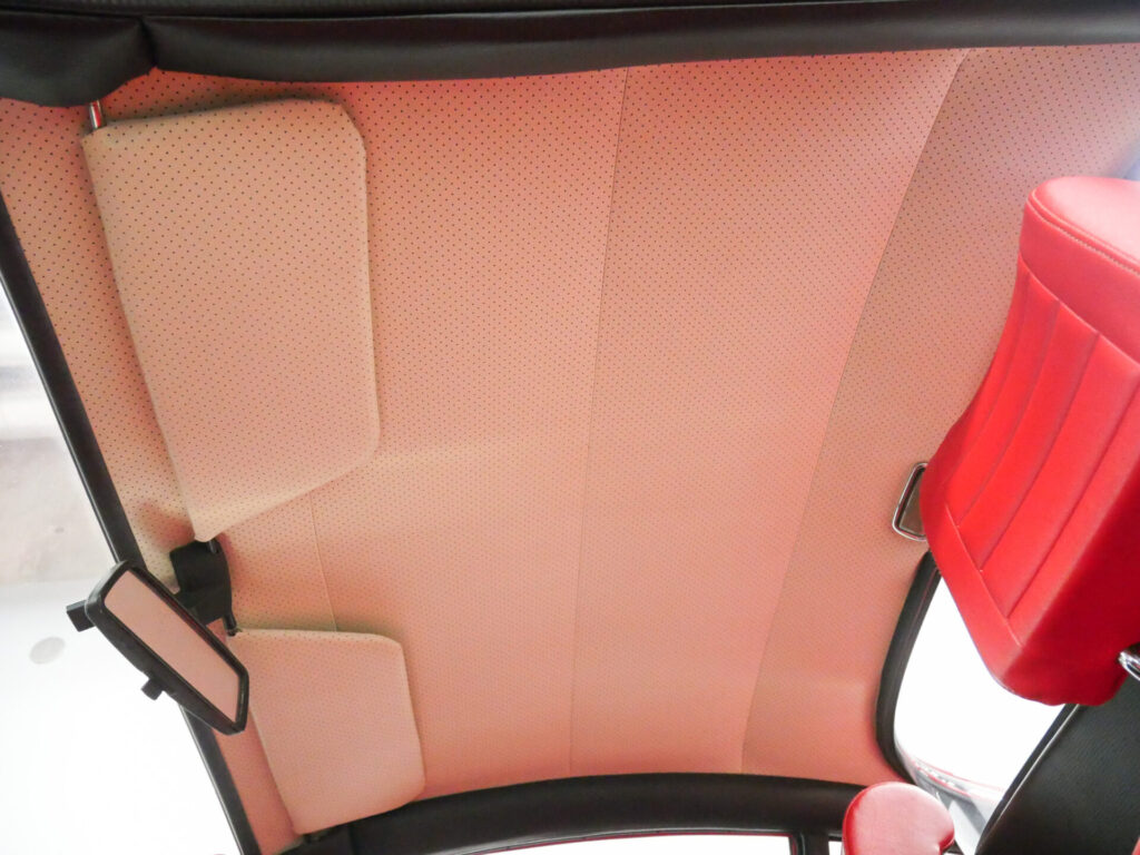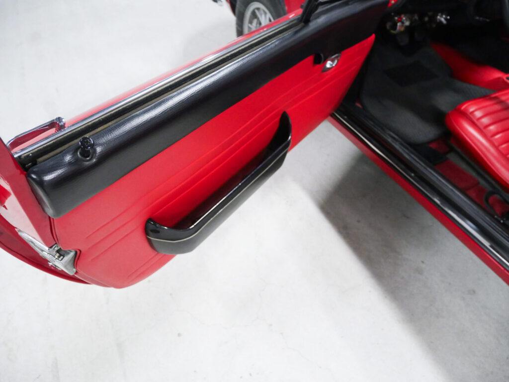 ボディはオリジナル同色で全塗装済、内装は赤へ張り替えられています。