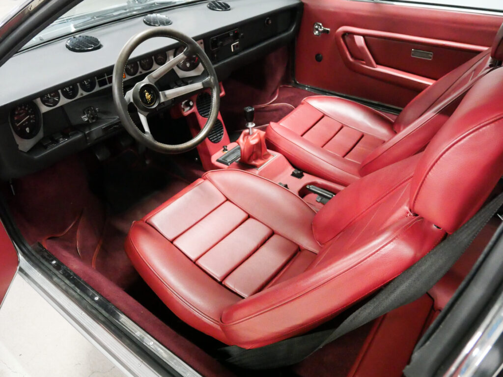 モノコックボディにV8 SOHCエンジンをミドに横置き、その下にギアボックスを一直線に置き、ホイールベースはミウラより9cm短いにもかかわらず、2+2という実用性を重視したレイアウトを成立させました。P250から始まり、P250Sでは装備が豪華になり電動ウィンドウ、スモークガラス、本革シートが標準装備となりました。1973年から1979年まで生産されていますが、ウラッコ全体を通して生産台数は800台程度にとどまっています。